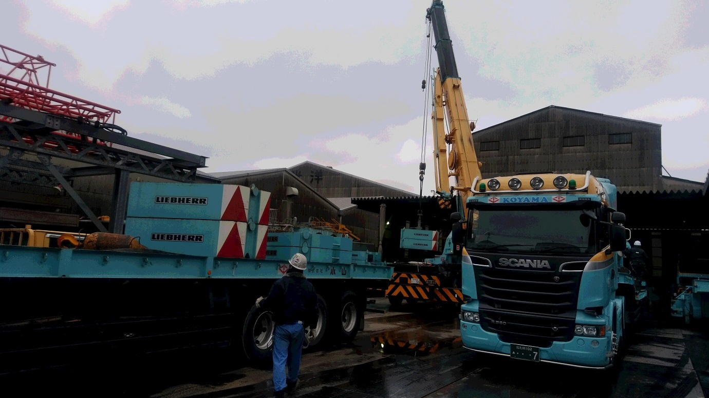 400tオールテレーンクレーン出庫準備! 弊社400tオールテレーンクレーンが4/13から防府で作業がある為、前日にブーム等取外しトレーラーに積込み、出庫の準備! 安全作業で無事故無災害に努めます! ※北九州 クレーン 北九州クレーン ラフター クローラー オールテレーン トラック トレーラー ※福岡 クレーン 福岡クレーン ラフター クローラー オールテレーン トラック トレーラー