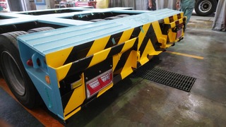 フルエアサス低床トレーラー 只今整備中です。 幅2.99 中落高500 中落長6500 後軸フレーム高800 最大積載量30.0t(軽っ) しかし グースネックと後軸はエアサスなんです。 これからはもっと繊細でデリケートな荷物も輸送可能になります。 納車が楽しみです